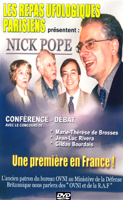 Nick Pope c'est l'ancien " patron " du bureau ovni au sein du Ministère de la Défense Britannique. Il travaillait encore il y a quelques mois au Ministère de La Défense, ou récemment il a occupé des fonctions importantes au sein du " staff " qui dirigeait à Londres les opérations concernant la guerre du Golf. Nick Pope venait pour la première fois en France donner une conférence sur le phénomène ovni. Sa journée à Paris a été très remarquée, à la fois par les spécialistes du phénomène que par les Médias (France 3, Ici et Maintenant, L'Express, Sud Radio etc.) Sa conférence était d'un " bon niveau "destinée aux spécialistes du phénomène, qui ont au cours de cette journée ont pu apprendre de nombreux faits jusqu'alors totalement inconnus. Cette journée a été organisée par Gérard LEBAT, le responsable du réseau Repas Ufologiques en France, dans le Cadre des Repas Ufologiques Parisiens. On retrouvera sur le site http://www.les-repas-ufologiques.com une importante documentation sur Nick Pope et le phénomène ovni en Grande Bretagne ainsi que la liste des villes en France où ce sont organisées des Repas Ufologiques. (Extrait de la 4ème de couverture) le présent DVD est réalisé par Thibault COLIN de France Vidéo pour le compte des Repas Ufologiques.